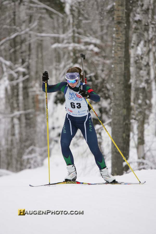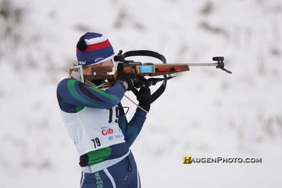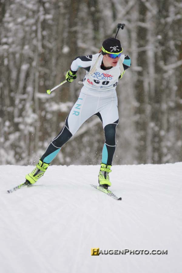 On the Junior Women had to battle it out with the Youth Women, and Anna Kubek’s fast times in the youth category made it difficult for Junior women to make the qualifying standards. In the Jr Women’s category, Tara Geraghty-Moats, West Farle, VT was the sole qualifier. Anna Kubek had a great series of races, shooting 100%, 90%, and 60% in her three races. Anna is also a member of the Duluth East cross country ski team. She had a particularly difficult training season this past year, only using one arm for training from April-November due to a shoulder injury. It hasn’t seemed to slow her down.
